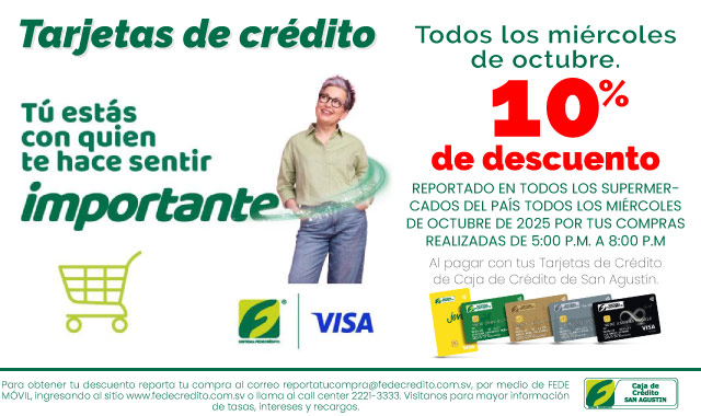 - El tarjetahabiente podrá solicitar la reversa del cobro de la membresía de su Tarjeta de Crédito llamando al número 2628-4100, 2628-4107 o escribiendo al correo informacion@ccsanagustin.com.sv.